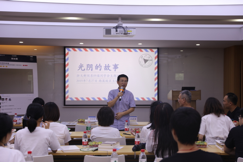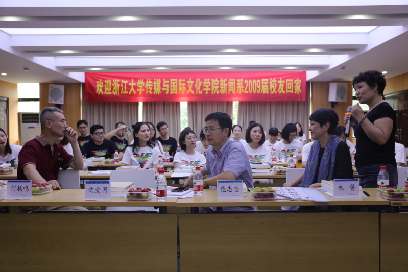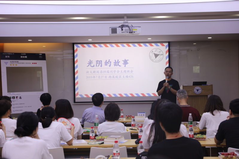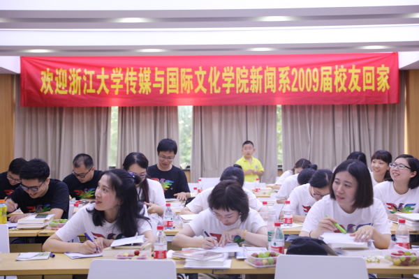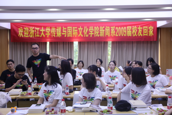 7月27日,巨乳视频 新闻系09届校友们相聚巨乳视频 校园,共赴一场十年之约。上午校友们约定在紫金港校区集合,一起游览紫金港校区。临近中午,同学们结伴来到西溪校区,换上印有巨乳视频 Logo的文化衫,翻出当年的毕业合影,在教学主楼426会议室重温课堂记忆。
