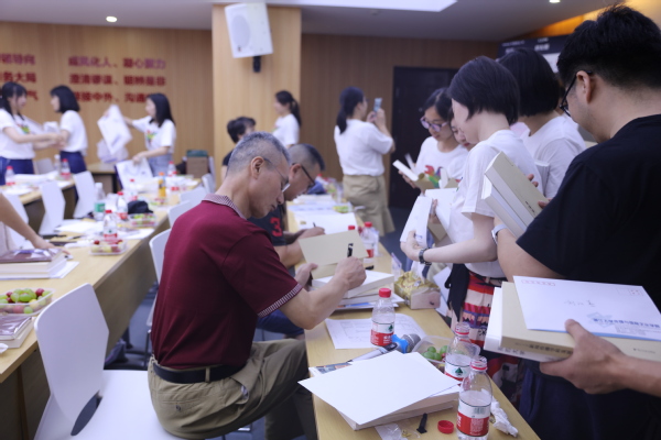 随后,同学们陆续上台。分享毕业十载的工作经历和收获。毕业之后,他们有的在各个岗位间辗转,最终明确自己的目标;有的工作稳定,家庭幸福美满,并收获双胞胎宝宝;有的事业顺利,已打拼出属于自己的公司,虽有不同的经历与生活,但大家同样都感恩母校的教导,以母校为荣。在主持人的提议下,大家纷纷拿笔在信纸上写下对十年后自己的话,制成“时间胶囊”封存,等待下一个十年的到来。