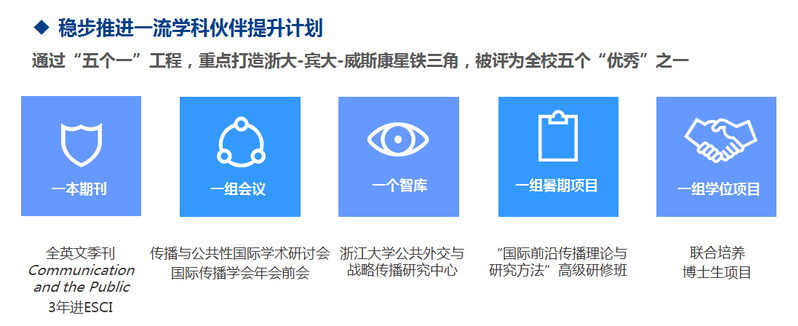 “五个一”工程即一本期刊、一组会议、一个智库、一组暑期项目和一组学位项目。