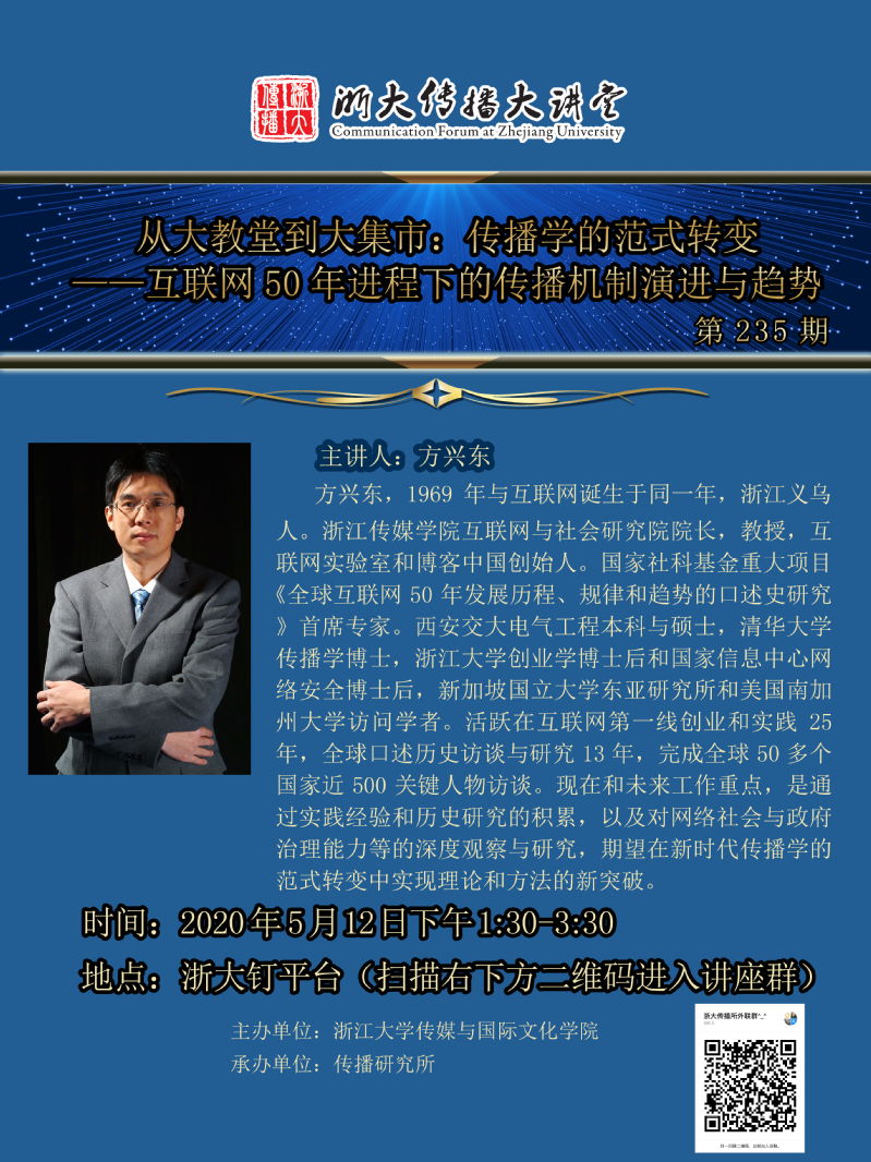 巨乳视频 传播大讲堂第235期 从大教堂到大集市:传播学的范式转变--互联网50年进程下的传播机制演进与趋势