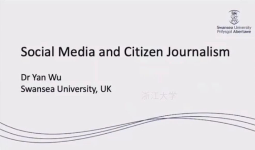 来自于斯旺西大学的吴燕老师带来的两个讲座主题分别为“Social Media and Citizen Journalism”与“Social Media and Social Ties”。吴老师从“What is social media”这一基础命题引入,以微信等社交软件为典例,分析了社交媒体的四大功能,介绍了公民新闻的概念与特性,以及社交媒体与社交关系之间的强弱等相互作用。