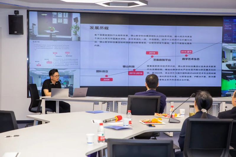 杭州银山科技有限公司董事长泮星则重点关注产研融合下的数字文化生态建设,为大家分享了银山科技在数字化生态建设、产教融合等方面的先进实力,并介绍了公司在数智媒体方面的研究成果与案例。
