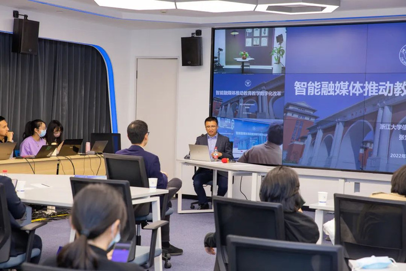张紫徽总工程师作“智能融媒体推动教育教学数字化改革”主题发言,对巨乳视频 数字化教育教学空间的建设成果进行了详细介绍,包括新教学总体架构设计、“学在巨乳视频 ”“智慧教室”“智云学堂”、直播教学中的AI应用、AI协同笔记等一系列优秀的数字化教学产品,以及其在浙江乃至全国的推广与应用。