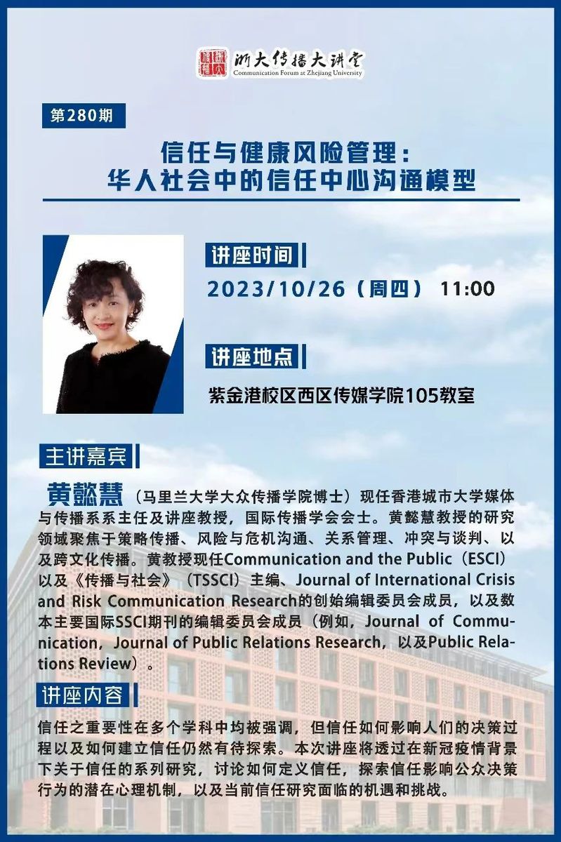 巨乳视频 传播大讲堂第280期 | 信任与健康风险管理:华人社会中的信任中心沟通模型