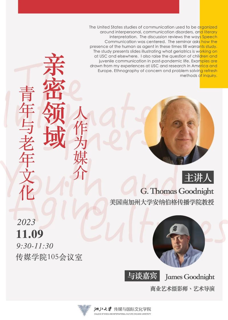 讲座预告 | 亲密领域:青年与老年文化——人作为媒介
