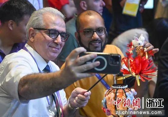 2023年9月29日,中国传统节日中秋节,浙江杭州举行2023西湖中秋赏月雅集活动,向亚奥理事会嘉宾等亚洲友人展示传统中华文化。图为亚奥理事会贵宾和工作人员提着花灯自拍合影。王刚 摄