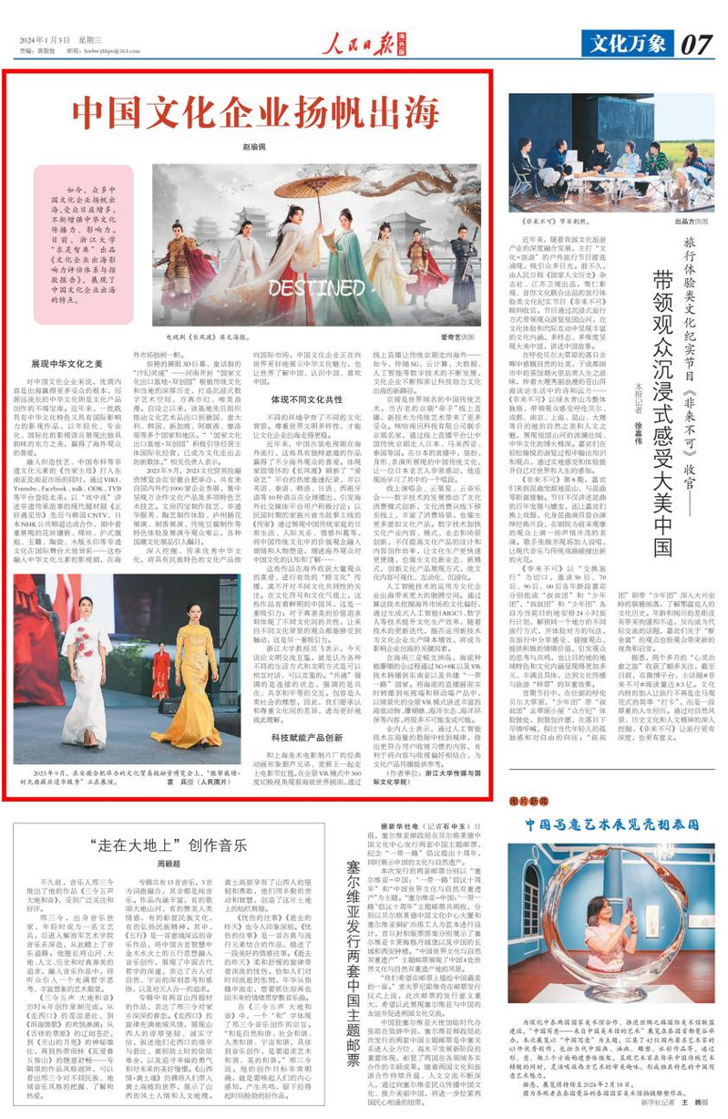 202413日,《人民日报·海外版》《CGTN》刊发了巨乳视频 赵瑜佩老师题为《中国文化企业扬帆出海》的文章。