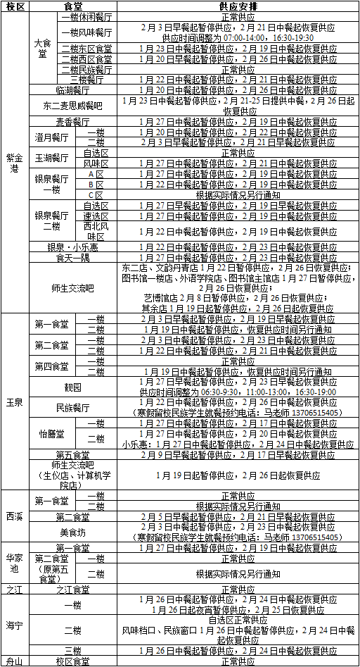 (3)寒假期间各校区夜宵暂停,访客就餐安排见食堂门口具体通知。