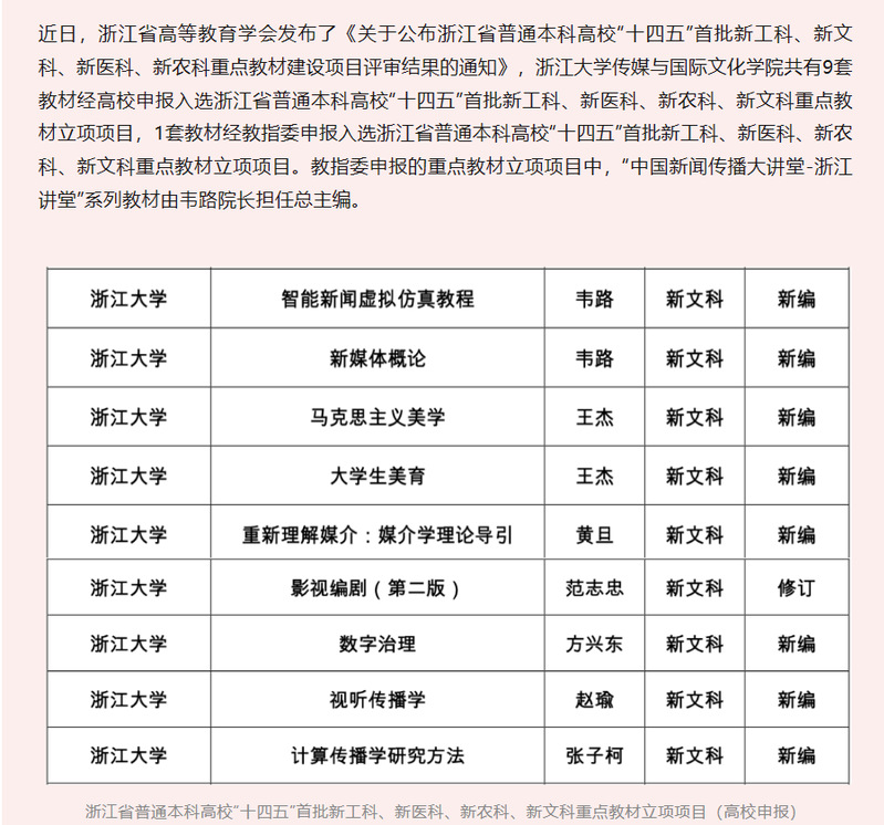 巨乳视频 9套教材经高校申报入选浙江省普通本科高校“十四五”首批