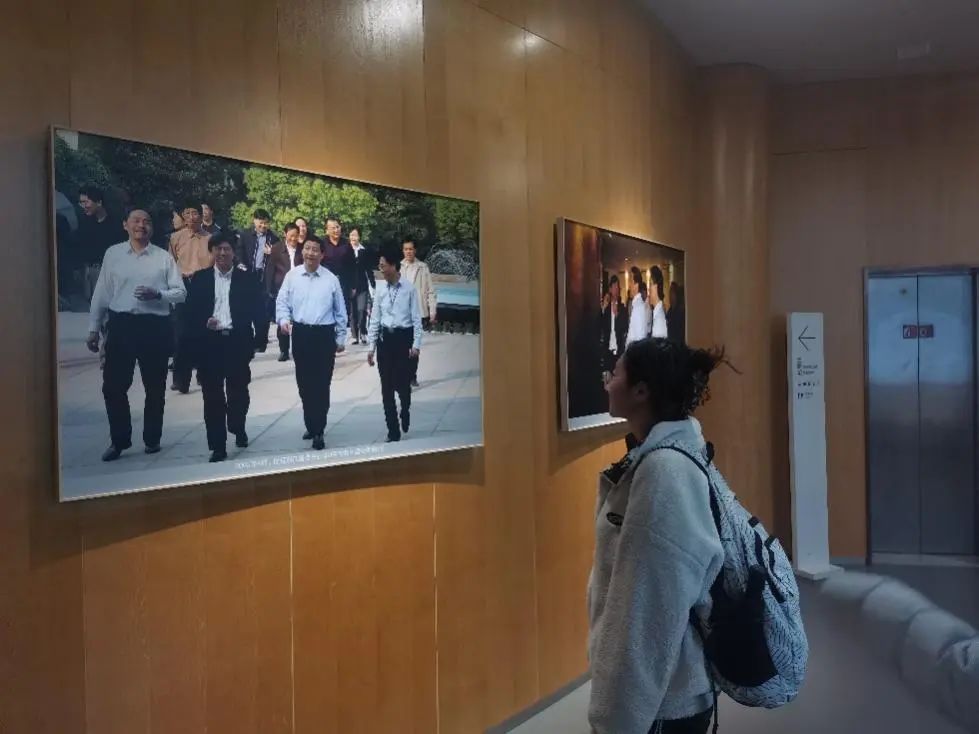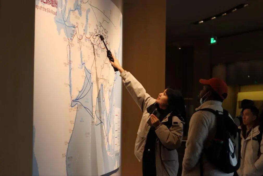 经讲解员介绍,习近平总书记早在2005年4月15日时任浙江省委书记期间便来到丝绸博物馆进行考察,在整个考察过程中总书记最为关注的就是丝绸之路。他听取了时任馆长赵丰对丝绸之路及其作用的详细讲解,并对海上丝绸之路非常关注。在参观过程中,总书记对蚕桑丝织技艺非物质文化遗产也作了详细询问和了解,并对中国丝绸博物馆的工作给予了充分肯定。2013年,习近平主席提出共建“一带一路”倡议。中国丝绸博物馆以丝绸为切入点,推出了丝绸之路文化研究传播的系列举措。