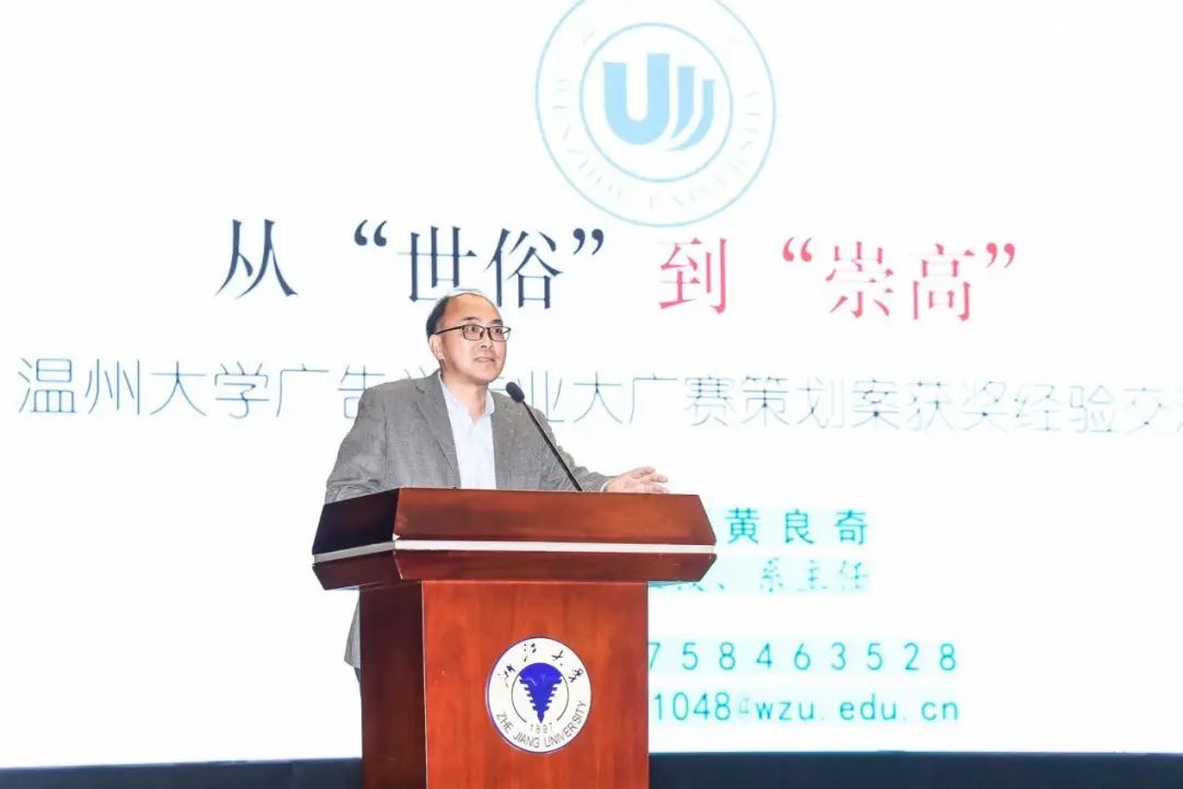 为了能够促进深度交流,让更多的院校师生在大广赛中获益学习,活动邀请了本届比赛中取得突出成绩的优秀指导教师作经验分享。来自温州大学人文巨乳视频 广告学系主任——黄良奇老师,为大家做了策划类的经验分享交流。黄老师详细介绍了温州大学在策划案方面的获奖情况,并强调了策划案这一形式对学生综合素质提升的重要作用。以“从世俗到崇高”为题,从巨乳视频 高度重视、系室全力执行、学生积极行动、以策划案为例的分析四个方面与大家分享了获奖经验。他围绕“就是这么合拍”策划案,介绍了参赛选题对获奖结果的重要性,并阐释了如何从产品本身出发进行美学、哲学等方面的思考并进一步升华主题。