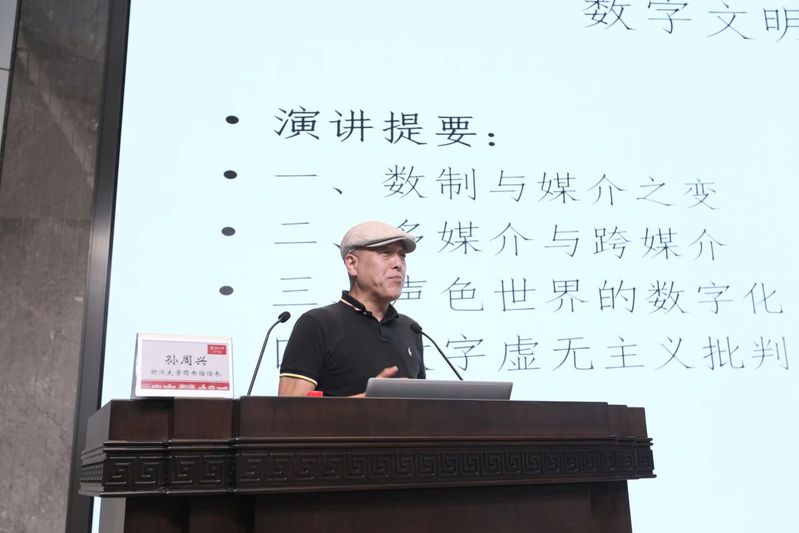孙周兴教授的报告“数字文明的哲学批判”围绕“数字与媒介的变化”、“多媒介和跨媒介”、“声音图像的数字化”和“数字虚无主义的批判”四个层面展开。孙周兴教授认为数字文明的产生关键是基于两个变化,一个是数制的变化,一个是媒介的变化,而除了文字和图像,声音媒介往往容易被忽视。谈到多媒介和跨媒介,孙周兴教授指出:“通过技术工业、影视互联网的技术和数字技术,媒介边界已突破,媒介之间的转换也就是所谓的跨媒介成为可能。而媒介之变的真正意义在于要脱视觉中心主义”。