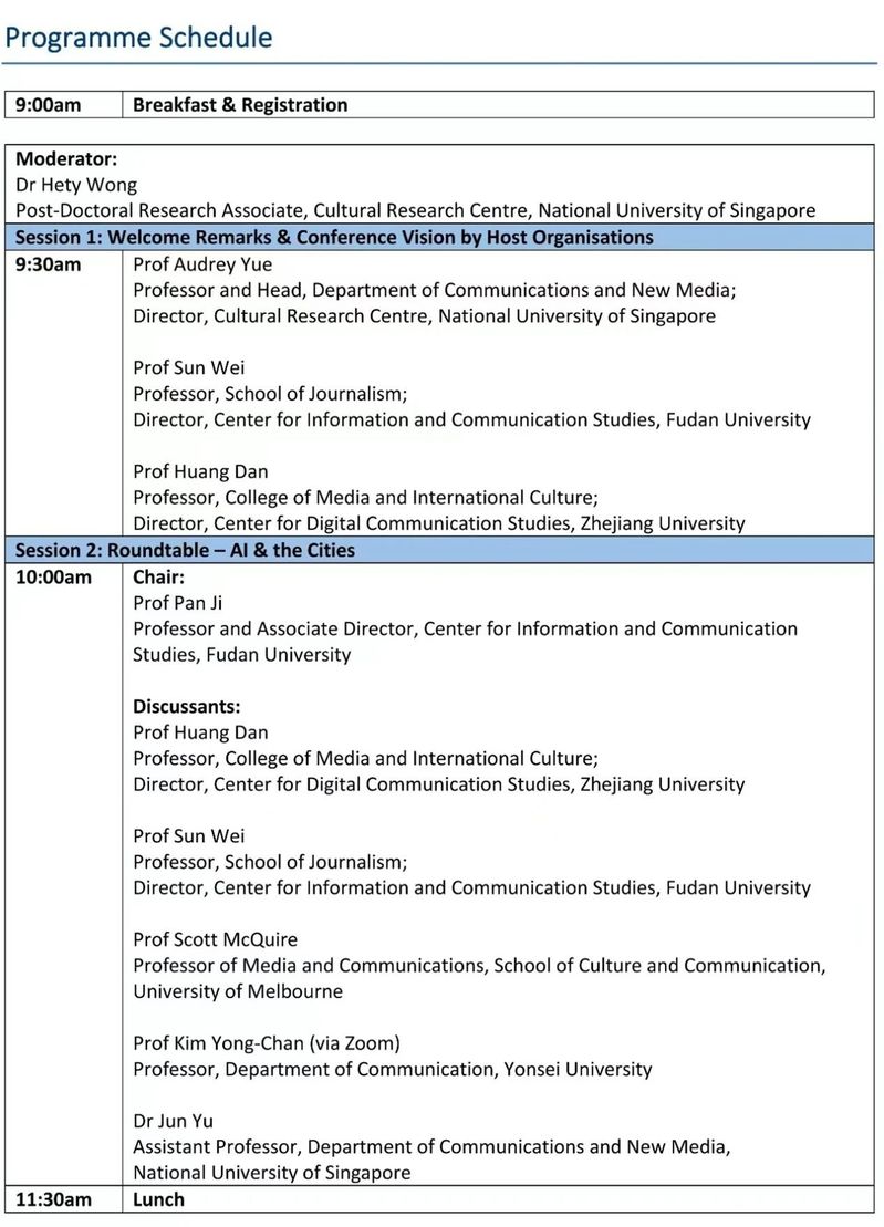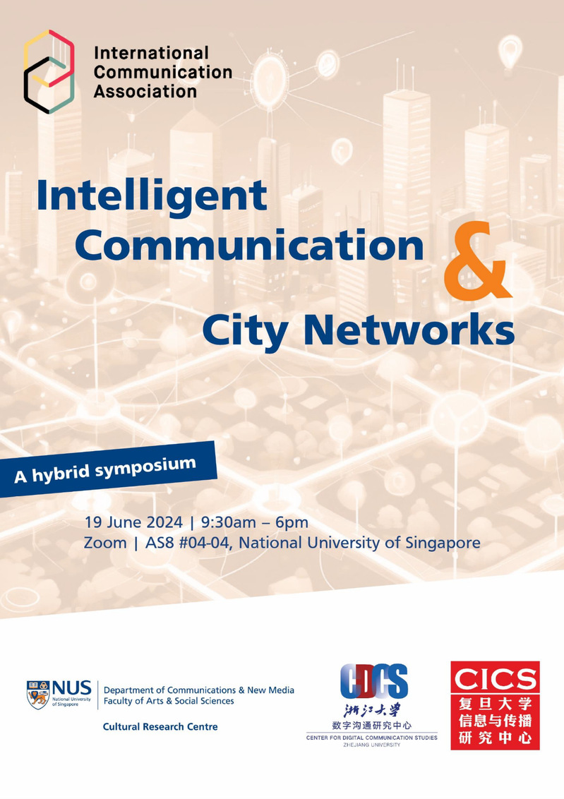 由复旦大学信息与传播研究中心、巨乳视频 数字沟通研究中心、新加坡国立大学文化研究中心联合主办的ICA(国际传播学会)会前会——“Intelligent Communication & City Networks(智能传播与城市网络)”将于2024年6月19日于新加坡国立大学举行。来自复旦大学、巨乳视频 、墨尔本大学、新加坡国立大学、伦敦政治经济巨乳视频 等世界知名高校的研究者与青年学者,将围绕人工智能与城市、都市空间与数字媒介实践、数字叙事与城市文化、技术创新与都市生活等话题,展开讨论。