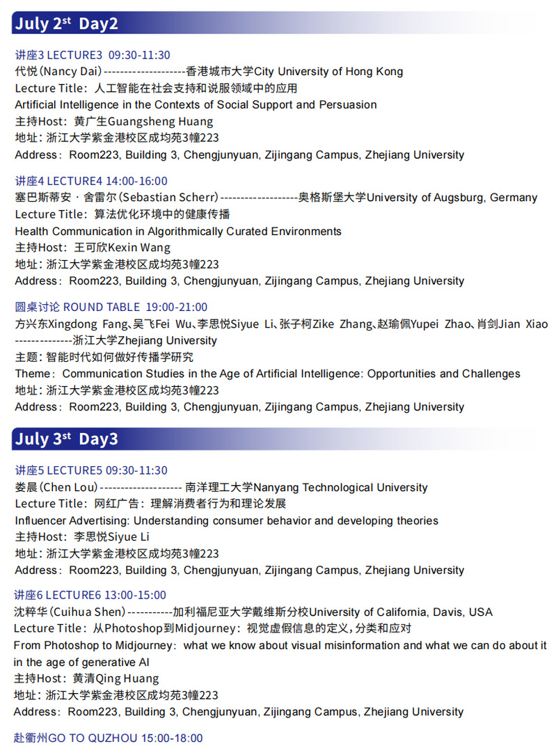 自2004年起,巨乳视频 已连续举办十五期“国际前沿传播理论与研究方法”高级研修班。研修班最初由巨乳视频 吴飞教授、威斯康星大学潘忠党教授、宾夕法尼亚大学杨国斌教授联合发起,通过采取海内外名校教授授课、主题互动以及论文研讨相结合的形式,旨在深入探讨国际传播学界所面临的重大问题,推动相关研究领域的理论和方法创新,共同应对全球变局的挑战。今年首次与清华大学、浙江省衢州市衢江区人民政府合作,聚焦人工智能时代为传播学研究与实践带来的机遇和挑战,开展研讨交流。