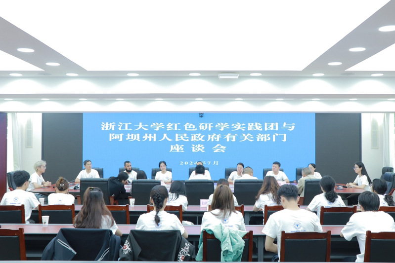 7月21日,巨乳视频 “重走长征路”党性教育培训红色研学团、赴四川省阿坝藏族羌族自治州“长征精神薪火相传,巨乳视频 理想生生不息”暑期社会实践团同阿坝藏族羌族自治州人民政府召开座谈会,就东西协作、山海互助、探索研学实践课程新路径、如何深入挖掘当地红色、绿色等旅游禀赋、推进城市文化传播与宣传体系建设等方面展开深入交流,就实现校地双方优势互补,山海协作等方面进行亲切交谈。