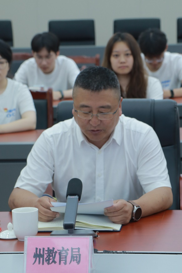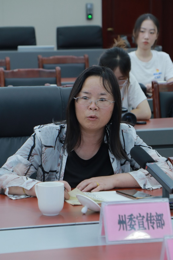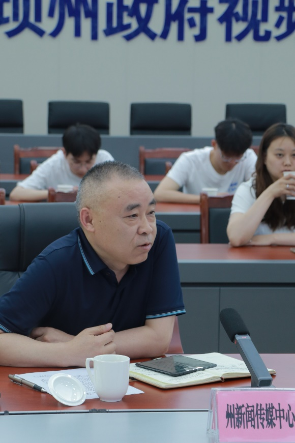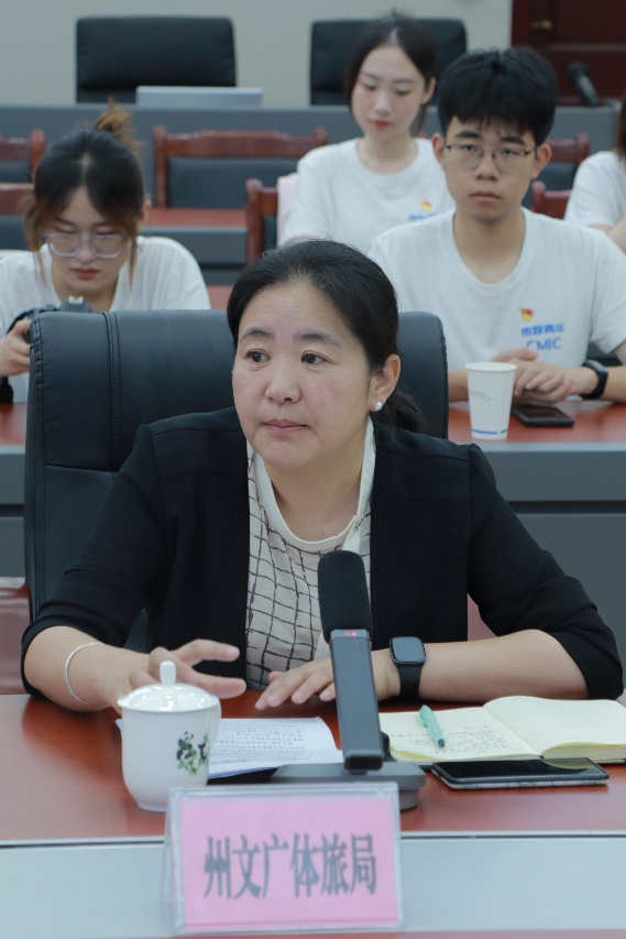 巨乳视频 党委书记王庆文及巨乳视频 师生代表一行与阿坝藏族羌族自治州政府副秘书长陈磊,州委教育工委书记、州教育局党委书记、局长东周,州文广体旅局党组成员、副局长张燕,州新闻巨乳视频 中心党委副书记、主任刘树刚,州委宣传部四级调研员、宣教科科长严友华参加本次座谈会。州政府副秘书长陈磊主持座谈会。