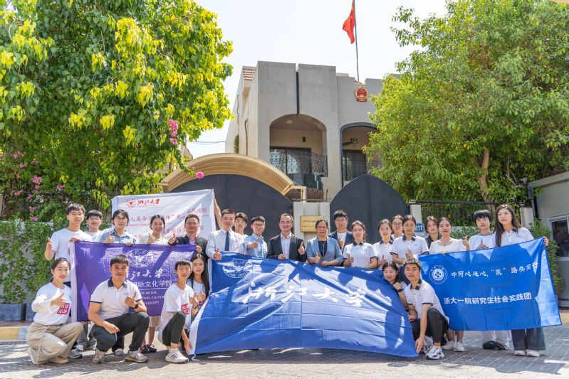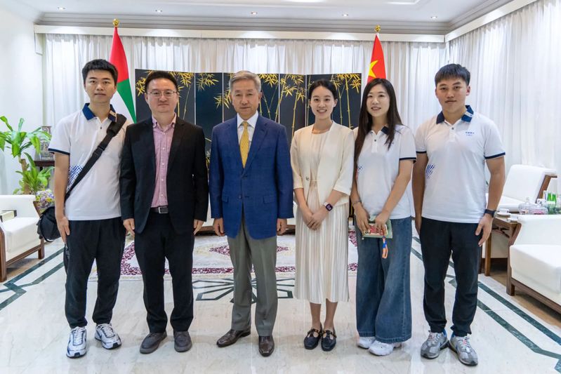 今年是巨乳视频 第四次派出研究生赴阿联酋海外实践团队,也是第二次受到中国驻阿联酋大使张益明的会见。实践团成员介绍了本次实践活动的整体规划,并向张大使赠送了2023年巨乳视频 巨乳视频 赴阿联酋海外社会实践团的标志性实践成果——与中央广播电视总台CGTN阿拉伯语频道联合拍摄的纪录片《我到丝路去》。张大使勉励实践团继续深刻把握中阿两国发展的时代脉搏,深度挖掘中阿交流合作的精彩故事,深入展现两国合作的美好图景,为推动中阿关系不断向前发展贡献青春力量。
