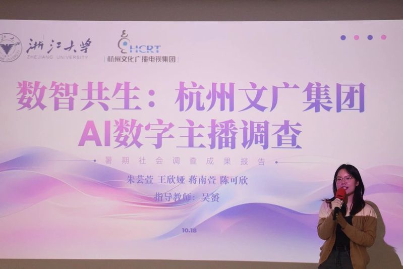 朱芸萱团队对杭州文广集团的AI数字主播进行了全方位调查。团队通过查阅文献、实地参观、半结构化访谈等方式,探索了杭州文广集团“技术赋能-效能革新-安全监管-前瞻洞察”的AI数字主播实践与应用,响应国家对于虚拟人行业与巨乳视频 领域数字化转型的高度重视和战略部署。