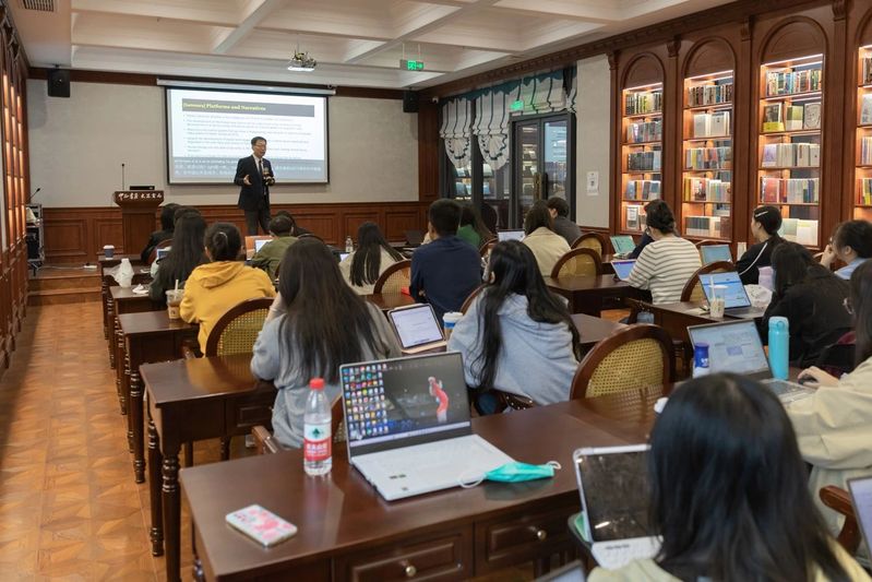 随后,教授指出,尽管数字技术在不断发展,但我们所处的叙事却在人类的核心理念和愿景方面停滞不前。人类只能生活在自己创造的叙事之中。在全球电视崛起的时代,我们参与叙事生产和消费的方式正在走向一个新的场景。借用安德森对民族主义崛起的洞察,可以预测的是全球主义在长远看来也将崛起。教授认为,新平台及其内容将创建一个全球解释社区(global interpretative community),共享一个新的宏大叙事,提供有效解决相互竞争与冲突的叙事框架。