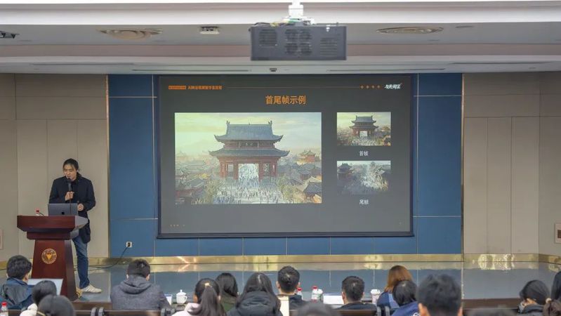 艾逸轩通过与光同尘AI创作的《千秋正风华》央视MV、《埃及法老双十一全球躺平之旅》携程合作广告、《阿里云天池大赛十周年AIGC形象片》等商业案例的展示,使同学们直观感受到AI在影视广告中的妙用,同时分享了AI在价格、制作周期等方面带来的显著的降本增效作用。