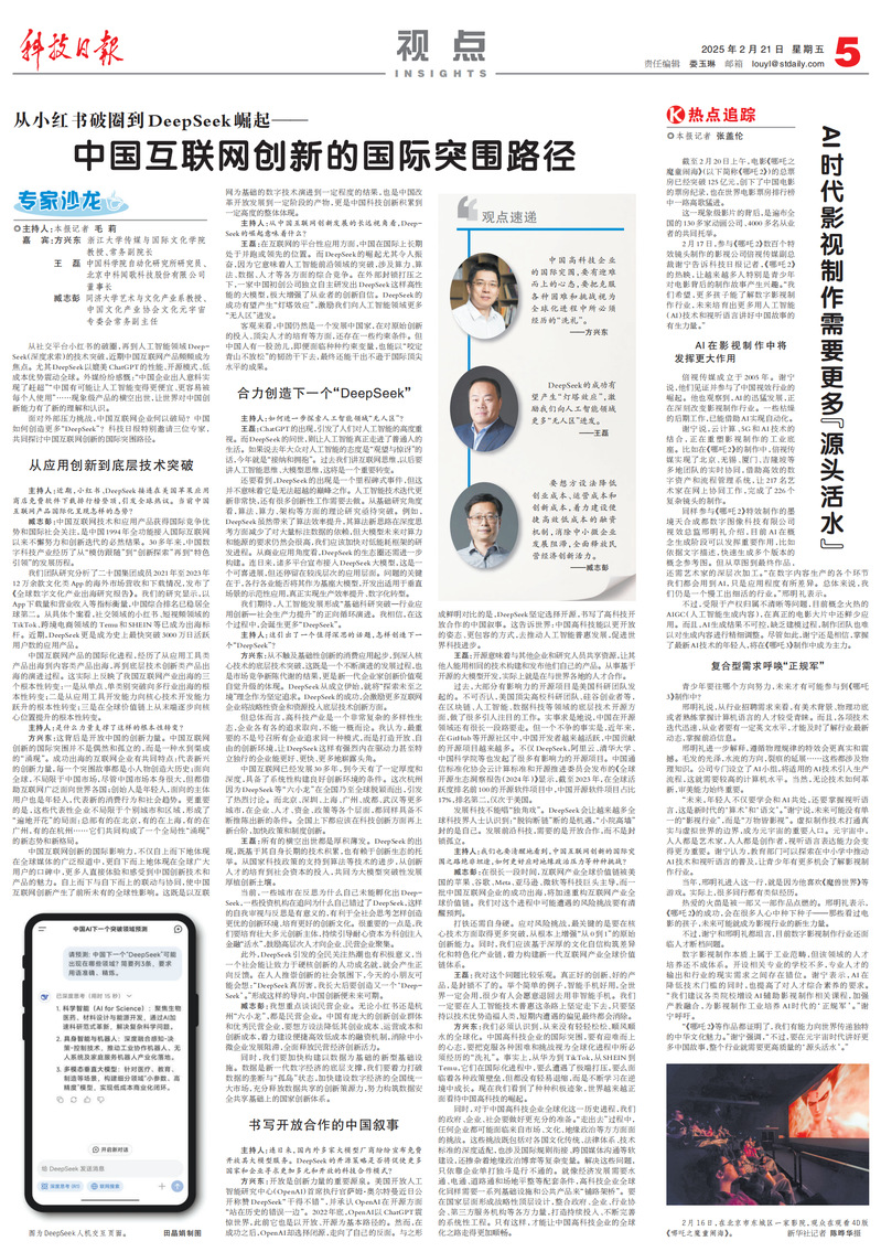 面对外部压力挑战,中国互联网企业何以破局?中国如何创造更多“DeepSeek”?对此,科技日报特别邀请巨乳视频 常务副院长方兴东等三位专家,共同探讨中国互联网创新的国际突围路径。
