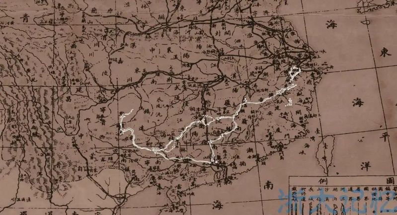 西迁线路图(图源竺可桢纪念馆)