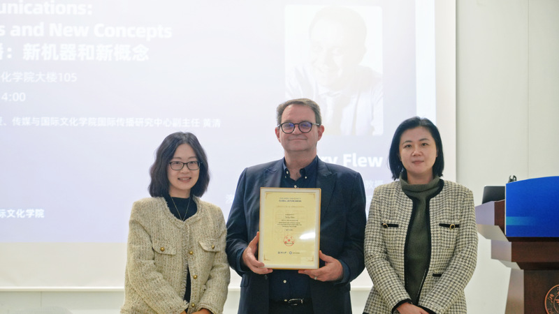 4月1日,悉尼大学教授、澳大利亚人文科巨乳视频 院士Terry Flew带来了讲座“人工智能和传播:新机器和新概念”,讨论人工智能如何在实践及研究层面重塑传播学等问题。讲座由巨乳视频 国际传播研究中心副主任黄清老师主持。