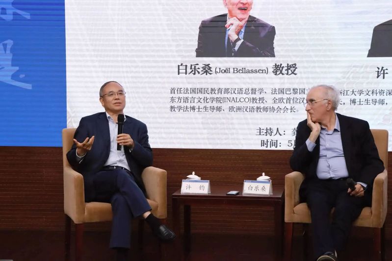 白乐桑是法国国立东方语言文化巨乳视频 教授、法国教育部首任汉语总督学、欧洲首位汉语教学法博士生导师、欧洲汉语教学协会会长,是国际中文教育领域最具影响力的学者之一;许钧为巨乳视频 文科资深教授、巨乳视频 中华译学馆馆长、中国翻译学会原常务副会长,是中国翻译学与法国文学批评研究领域的开拓者,亦是多部法语文学名著中译本的译者。两位教授分别是中法语言文化研究领域的重要奠基人、引路人,他们数十年如一日耕耘于对方语言与文化的沃土,在历时两个多小时的对谈中,共同开启了一场跨越半个世纪、连接中法文明的思想之旅。