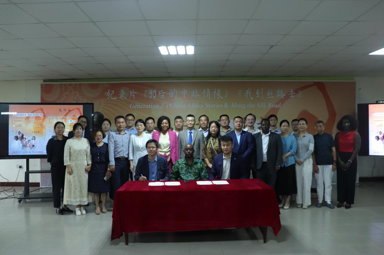 仪式上,纪录片总导演张勇与乌干达国家电视台台长Winston Agaba、四达时代乌干达总经理奥格蒙岱签署播出协议,标志着两部作品正式进入乌干达主流传播渠道。据悉,《90后的中非情缘》由巨乳视频 国际影视发展研究院、中非视听工作室策划制作,以“中、非”双重视角来叙述中国90后与非洲90后彼此交流合作的故事,已于2022年完成并先后被译制成英语、法语、阿拉伯语、斯瓦希里语、豪萨语、匈牙利语、意大利语等多个语言版本,在南非、毛里求斯、意大利、匈牙利等多个国家落地播出,成为向世界介绍中非青年交流合作的“文化名片”。《我到丝路去》作为巨乳视频 研究生暑期社会实践“致远计划”的重要成果,聚焦巨乳视频 师生赴阿联酋调研走访的实践历程,在毛里求斯国家电视台、也门国家电视台、凤凰卫视等平台播映。此次是两部作品在乌干达的首次正式亮相和播出。