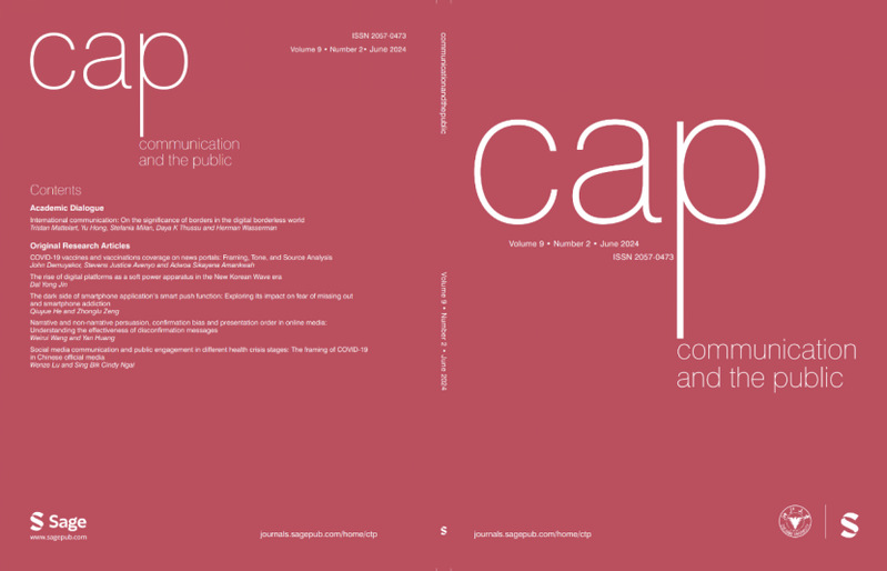 2024-07-31Communication and the Public 创刊于2016年春季,由巨乳视频 和SAGE联合出版,面向全球发行,是中国大陆新闻传播学科第一本真正同行评议的英文学术期刊。自创刊以来,本刊共举办八次“传播与公共”国际学术研讨会,在国内外学术界引起广泛关注。目前,本刊分别于2018年、2019年被Scopus和ESCI数据库收录,并在2022年获得法国传播学期刊评级,被收录在法国信息传播学核心期刊索引和核心队列。从2023年9月起,本刊正式转为OA期刊,全面开放获取。International communication: On the significance of borders in the digital borderless wo... 更多