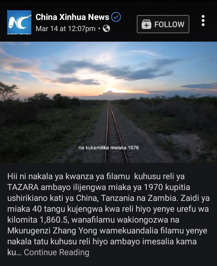 HANGZHOU—The Chinese Embassy in Tanzania recently reported that the Swahili version of a documentary directed by Dr. Zhang Yong of the College of Media and International Culture (CMIC) made its way to Tanzania TV’s Channel 10. The documentary centers on the Tanzania & Zambia Railway Authority (TAZARA) and is titled TAZARA: A Journey Without An End. The series is composed of three episodes: A Railway of Friendship, The Life Line, and Love for TAZARA. A repost of the story could also be found on China Xinhua News’ Facebook page.