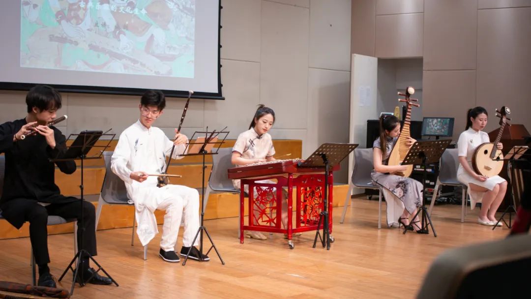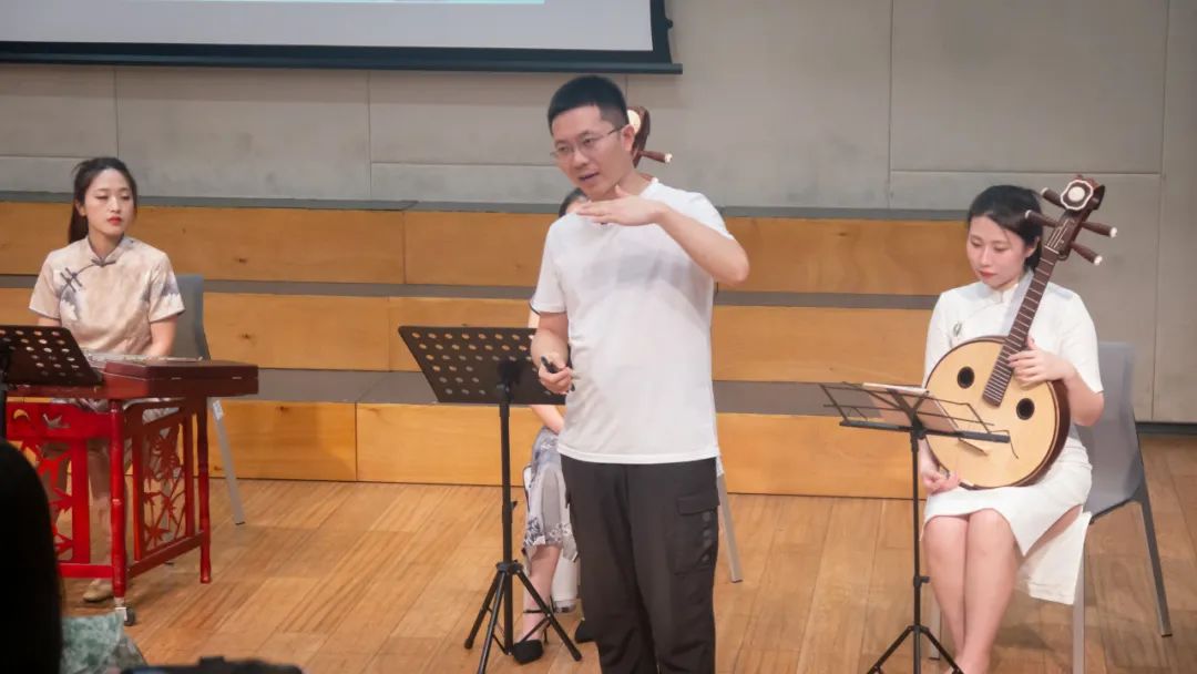 Come evening, the long-anticipated Chinese classical music appreciation event unfolded. Dr. Shi Jian, the Dean of the Ya Department Research Institute, led traditional music teachers in delivering a captivating Chinese string and woodwind performance to the European Chinese teachers. Starting with the flute, Dr. Shi introduced various Chinese traditional musical instruments to the audience. The flute, symbolizing the first breath of human civilization 9,000 years ago, and the rich array of string and woodwind instruments, showcased the rich heritage and evolution of Chinese musical instruments over centuries. Each note resonated across the hall, echoing the ancient sounds of China, transcending time and space, and providing a profound cultural experience to the European educators.