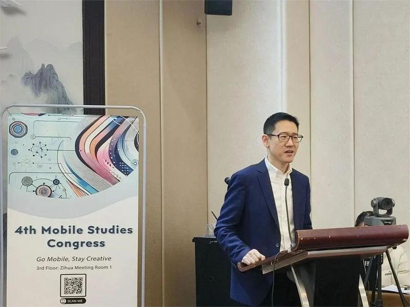 Xiaoge Xu, a professor at Zhejiang Wanli University and the founder of Mobile Studies Congress and Mobile Studies International in Singapore, delivered a report on the intersection of AI and mobile studies. He emphasized that AI is reinventing our identities and work, and that it has a profound impact on the interdisciplinary field of mobile studies encompassing mobile media, mobile objects and mobile communication. He illustrated this by presenting an AI-generated video and discussed the vast potential of AI applications. He hoped that through collaborative efforts, the international mobile studies would be advanced with the usage of AI and mobile technologies.
