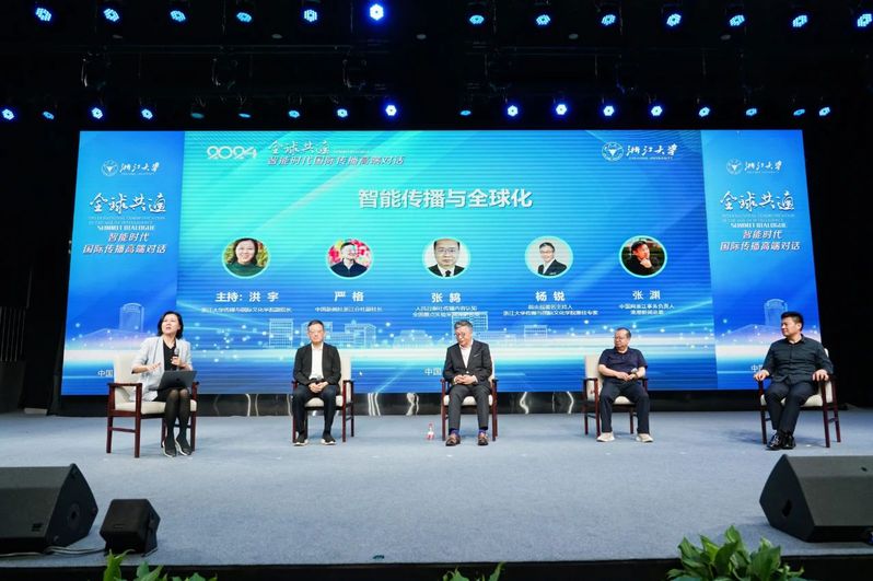 The dialogue on Intelligent Communication and Globalization was hosted by Hong Yu, Vice Dean of School of Media and International Culture, Zhejiang University. Yan Yan, Deputy Director of Zhejiang Branch of China News Service, Yang Rui, Former Famous CCTV Host and Part-time Expert of School of Media and International Culture, Zhejiang University, Zhang Xuan, senior researcher of the National Key Laboratory of Communication Content Cognition of People's Daily, Zhang Yuan, head of Zhejiang affairs of China.com and head of Inspur News of China.com participated in the discussion.