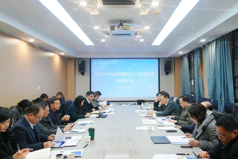 On the afternoon of February 25, Zhejiang University held a symposium on the education and teaching of undergraduate journalism and communication talent in Room 320 of the College of Communication. Zhao Lei, Deputy Party Secretary of Zhejiang Radio and Television Group; Zhou Tianxiao, Deputy Editor-in-Chief of Zhejiang Daily Group; Zhang Yuyi, General Manager of Communication Brain Technology; and Hu Hongwei, Senior Reporter at The Paper, were invited to attend the meeting, along with Yang Yang, Deputy Director of the Undergraduate Affairs Office at Zhejiang University, as well as the college leadership team and department heads. The symposium focused on reforms in journalism and communication education in the context of the intelligent revolution, with in-depth discussions on top-level discipline design, course system innovation, and the integration of industry and education. The meeting was chaired by Wang Qingwen, Party Secretary of the college.