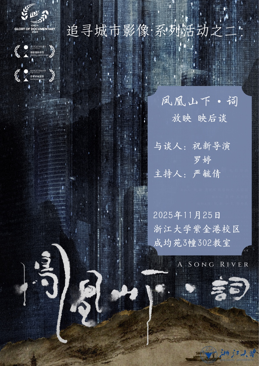 Phoenix Mountain: Lyrics chronicles director Zhu Xin's exploration of Hangzhou's urban evolution through the medium of Song dynasty poetry, embarking on a trans-temporal quest that intertwines history, the present, and personal memory. Premiering at the 2024 Pingyao International Film Festival, where it received the Youth Jury Honourable Mention, the film will be followed by a post-screening discussion with Director Zhu Xin, who will attend in person to engage with Zhejiang University faculty and students.